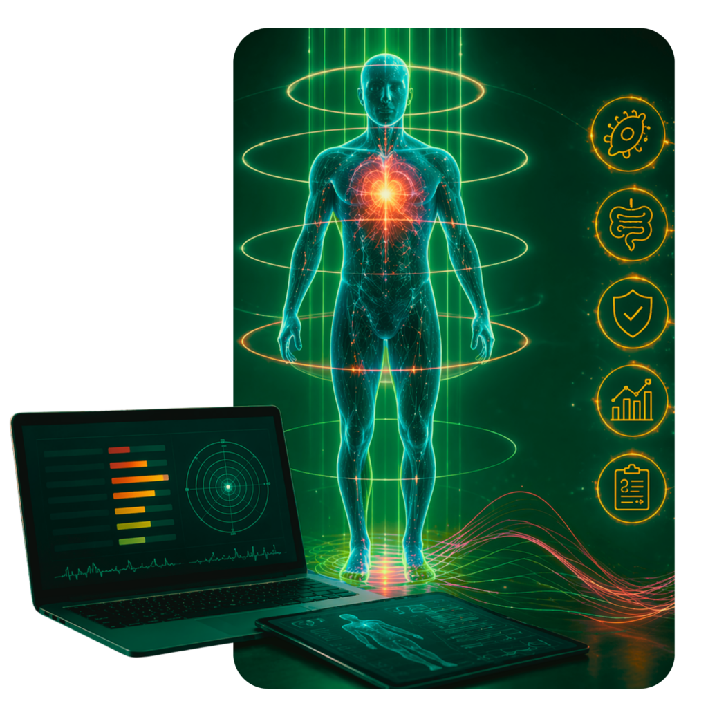 Identifique se vermes, fungos, metais pesados, vírus, radiações do ambiente e alimentos incompatíveis podem estar afetando sua saúde e sua energia.